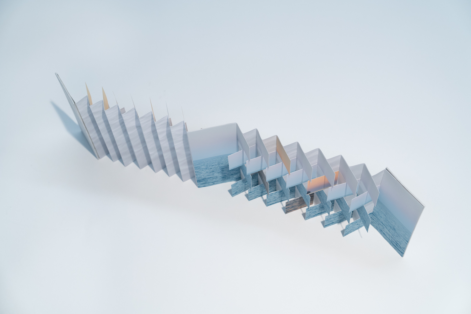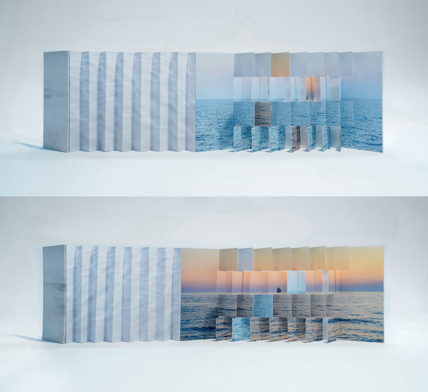 I channeled this sense of yearning and disorientation into a flag book in which the double-sided design reflects the north-east and south-west proximity of the two cities, each interwoven with fragments of the other.